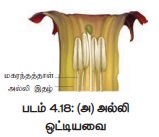 அல்லி ஒட்டியவை: மகரந்தத்தாள்கள் அல்லி இதழ்களுடன் ஒட்டிக் காணப்படும்.