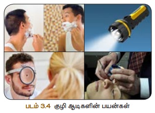 ஒளியியல் | அலகு 3 | 8 ஆம் வகுப்பு அறிவியல் - வளைவு ஆடியின் பயன்கள் | 8th Science : Chapter 3 : Light