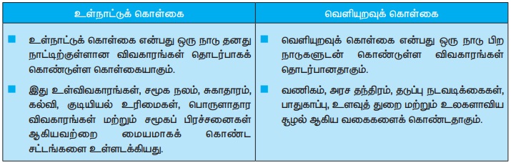 • வெளியுறவுக் கொள்கை என்பது ஒரு நாடு பிற நாடுகளுடன் கொண்டுள்ள விவகாரங்கள் தொடர்பானதாகும்.