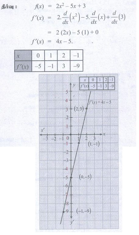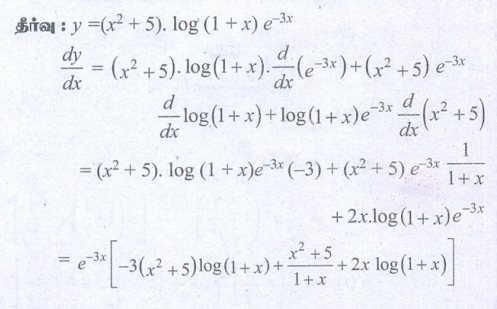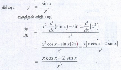 11 வது கணக்கு : அலகு 10 : வகை நுண்கணிதம் வகைமை மற்றும் வகையிடல் முறைகள் DIFFERENTIABILITY AND METHODS OF DIFFERENTIATION : பயிற்சி 10.2: வகையிடல் விதிகள் (Differentiation Rules) - புத்தக கணக்குகளுக்கான பதில்கள், தீர்வுகள் | கணக்கு : 11 ஆம் வகுப்பு