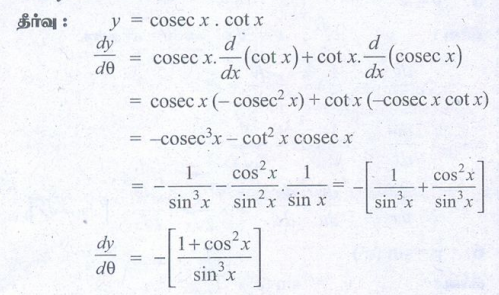 11th Mathematics : UNIT 10 : Differential Calculus: Differentiability and Methods of Differentiation : Exercise 10.2: Derivatives of basic elementary functions - Differentiation Rules Problem Questions with Answer, Solution | Differential Calculus | Mathematics in Tamil : 11th Standard