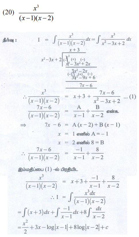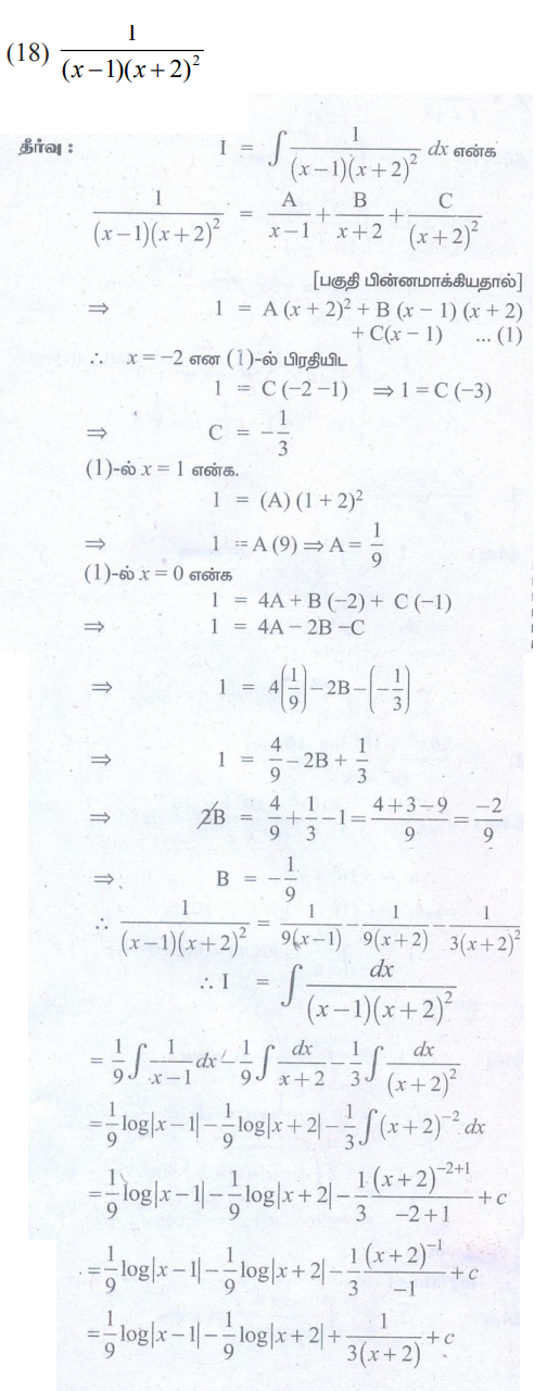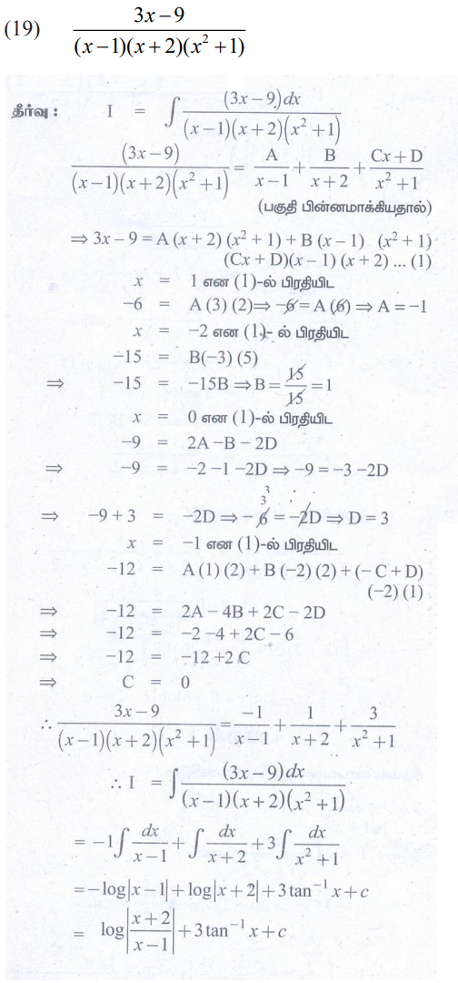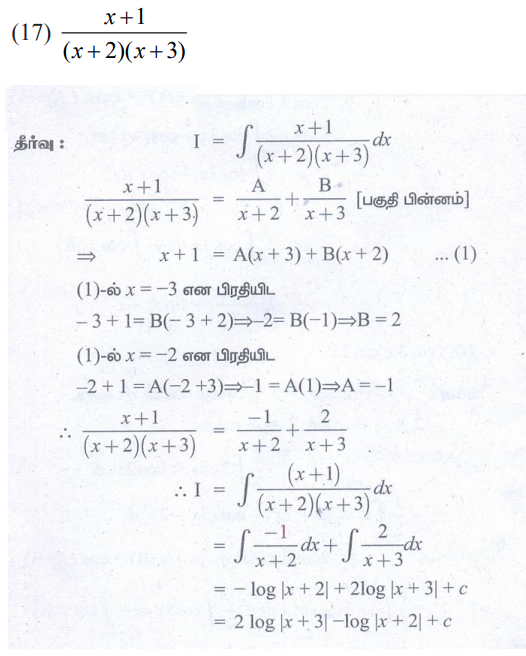 11th Mathematics : UNIT 11 : Integral Calculus : Exercise 11.5: Decomposition by Partial Fractions - Integration Method Problem Questions with Answer, Solution | Mathematics in Tamil : 11th Standard