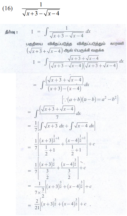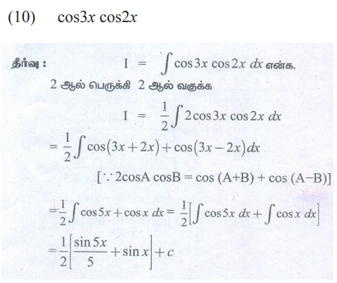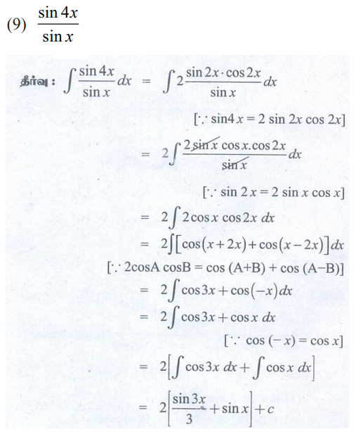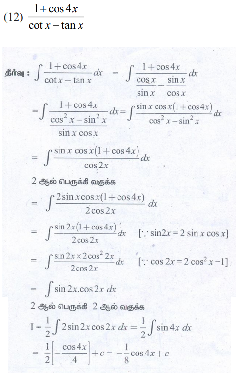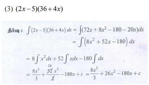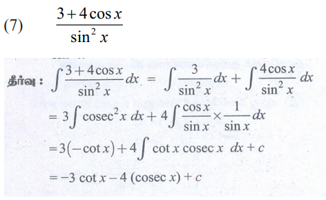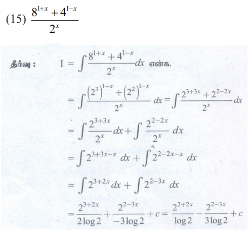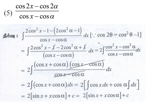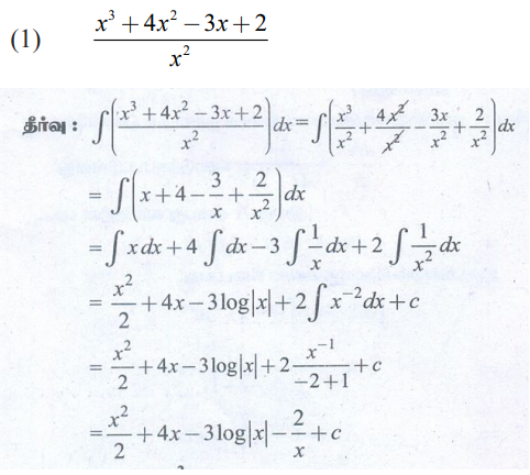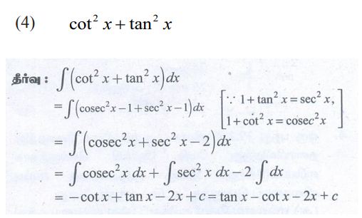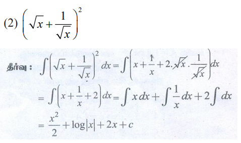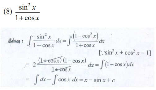 11 வது கணக்கு : அலகு 11 : தொகை நுண்கணிதம் Integral Calculus : பயிற்சி 11.5: தொகை காண வழிமுறைகள் (Methods of Integration) : பல்வேறு வினாக்களுக்கான பதில்கள் மற்றும் தீர்வுகள்
