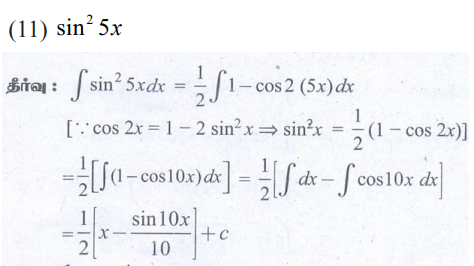 11 வது கணக்கு : அலகு 11 : தொகை நுண்கணிதம் Integral Calculus : பயிற்சி 11.5: தொகை காண வழிமுறைகள் (Methods of Integration) - புத்தக கணக்குகளுக்கான பதில்கள், தீர்வுகள் | கணக்கு : 11 ஆம் வகுப்பு