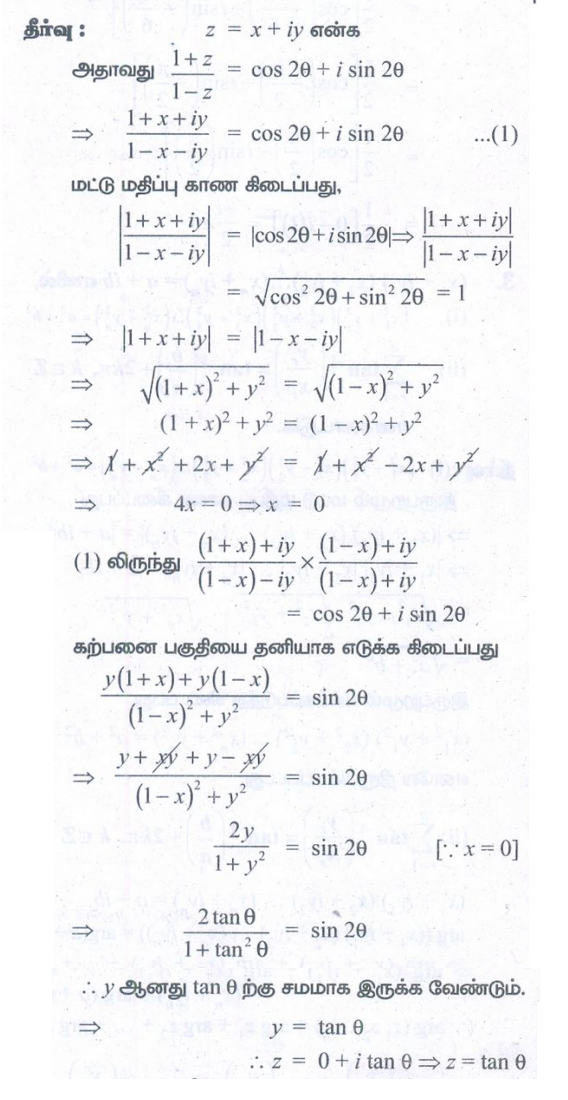 4. (1 + z)/(1− z) = cos 2θ + isin 2θ , z = i tan θ என நிறுவுக.