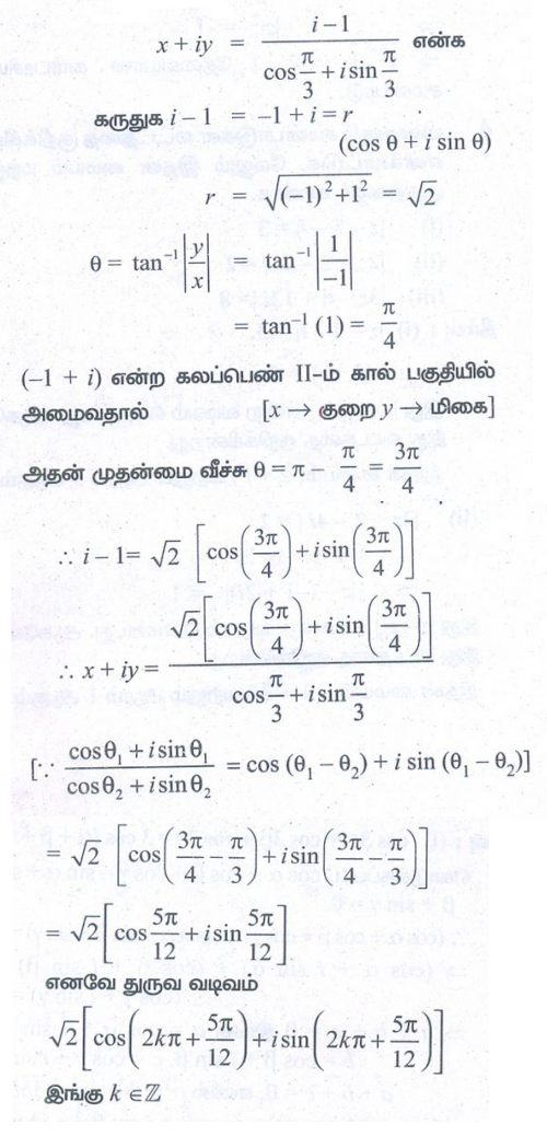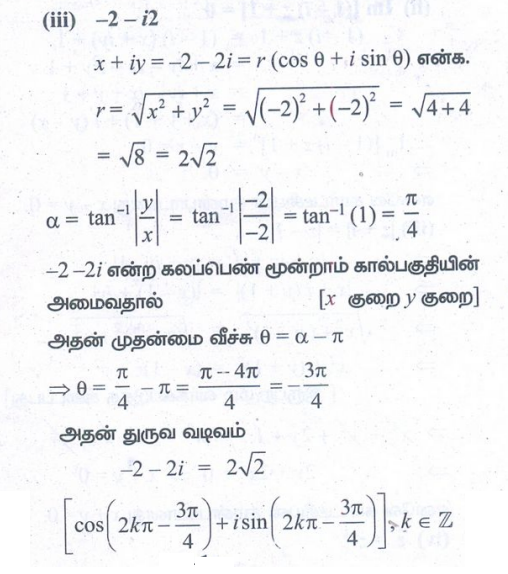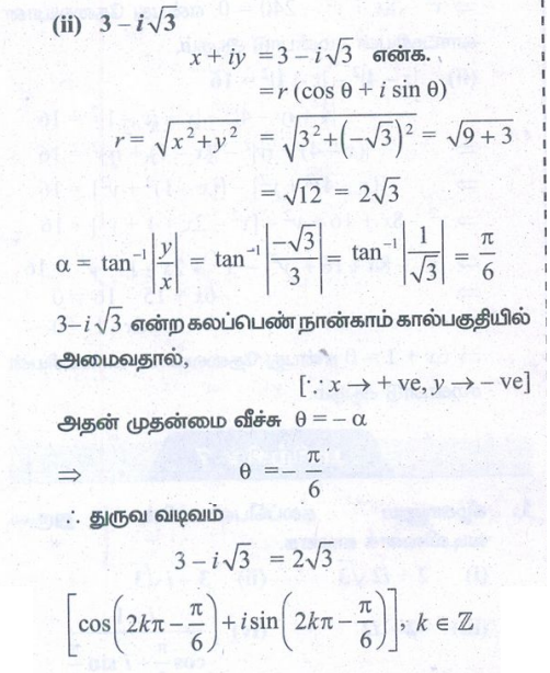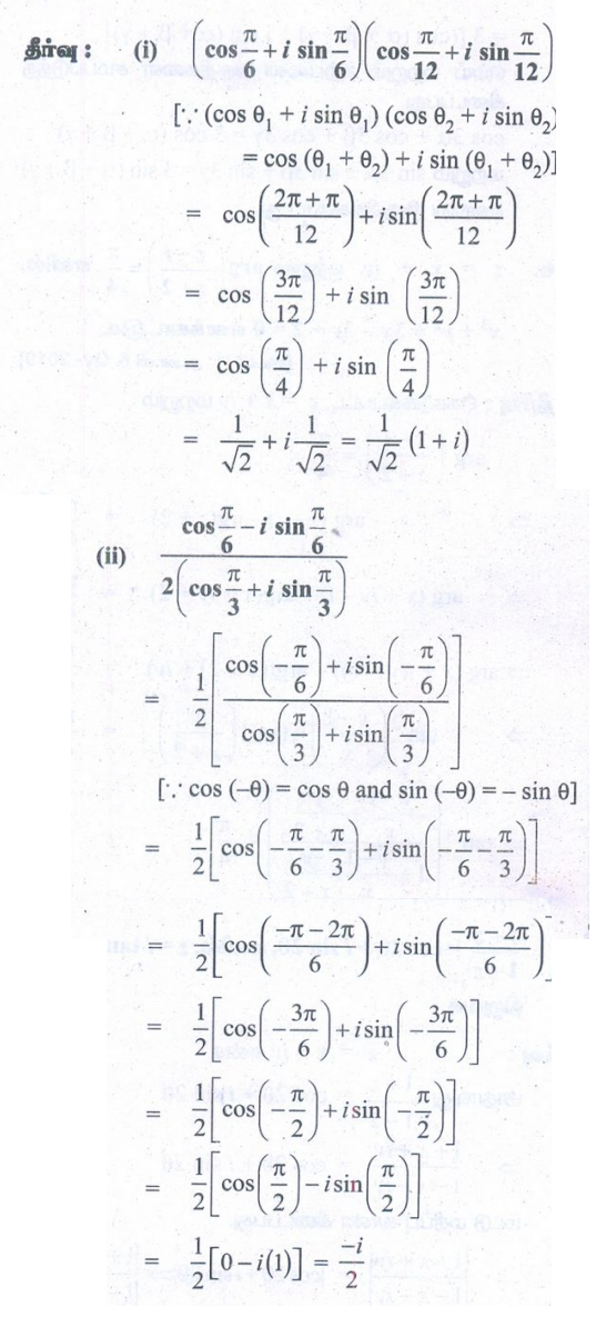 12 ஆம் வகுப்பு கணிதம் : அத்தியாயம் 2 : கலப்பு எண்கள் : பயிற்சி 2.7: கலப்பு எண்களின் துருவ வடிவம் மற்றும் ஆய்லர் வடிவம் (Polar and Euler form of a Complex Number) : பல்வேறு வினாக்களுக்கான பதில்கள் மற்றும் தீர்வுகள்
