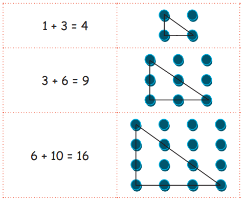 இரண்டு அடுத்தடுத்த முக்கோண எண்களின் கூட்டுத் தொகை ஒரு சதுர எண்ணாகும்.
