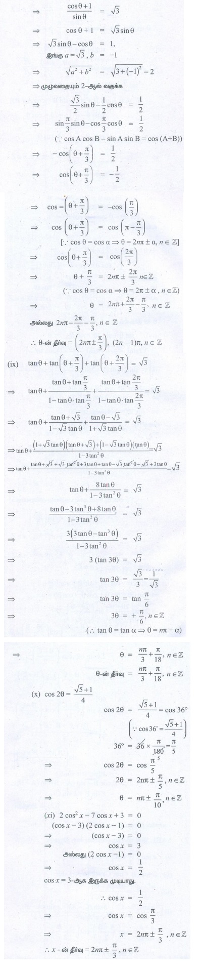 11th Mathematics : UNIT 3 : Trigonometry : Exercise 3.8: Trigonometric equations Problem Questions with Answer, Solution | Mathematics in Tamil : 11th Standard