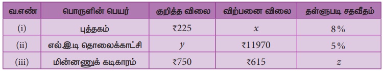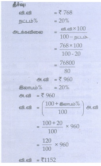 % நட்டத்தில் ₹555 இக்கு விற்கப்படுகிறது. அந்த பொருளின் அடக்க விலை ₹ 600 ஆகும்.