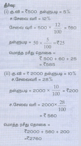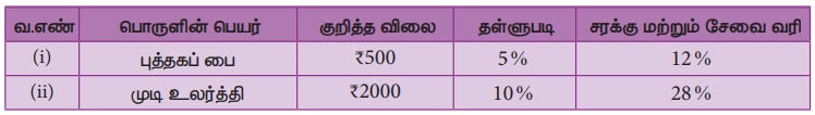 (v) ₹575 மதிப்புடைய ஒரு சட்டைக்கும், ₹325 மதிப்புடைய ஒரு T சட்டைக்கும் 5% சரக்கு மற்றும் சேவை வரி விதிக்கப்படுகிறது எனில், மொத்த இரசீது தொகை ₹ 945 ஆகும்.