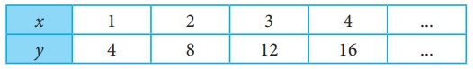 2. கொடுக்கப்பட்டுள்ள அட்டவணையின் மூலம் x மற்றும் y இன் மதிப்புகளுக்கிடையேயான சரியான தொடர்பைக் காண்க.