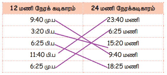 ஈ) ஒரு வங்கி காலை 9:30 மு.ப முதல் மாலை 4:30 பி.ப வரை இயங்குகிறது எனில், வங்கி இயங்கும் நேரம் எவ்வளவு?