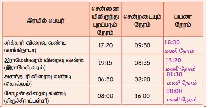 24 மணி நேரக் கடிகாரத்தில் கொடுக்கப்பட்டிருக்கும் நேரத்தைக் கொண்டு தொடர் வண்டியின் பயண நேரத்தை கண்டறிக.
