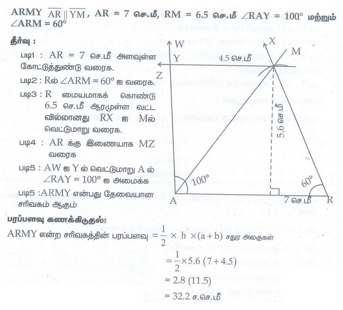 , AR=7 செ.மீ, RM = 6.5 செ.மீ, ∠RAY = 100° மற்றும் ∠ARM = 60°