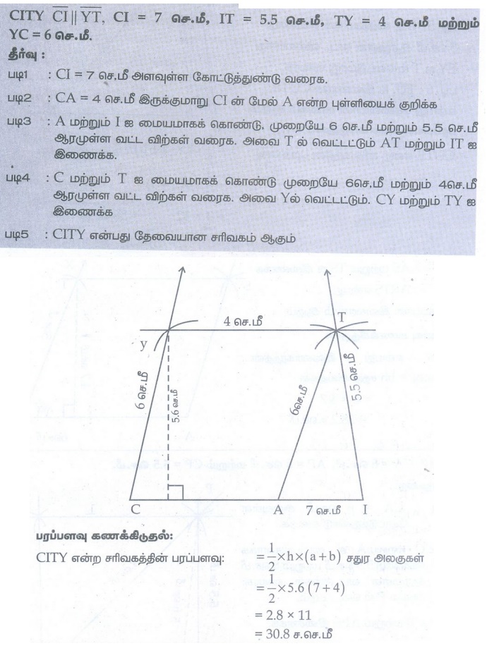= 7 செமீ , IT = 5.5 செ.மீ , TY= 4 செ.மீ மற்றும் YC = 6 செ.மீ.