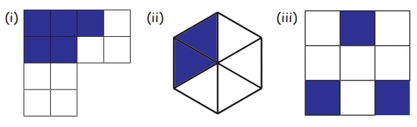 1. நிழலிடப்பட்டப் பகுதிகளால் குறிப்பிடப்பட்ட பின்னங்களை எழுதுக.