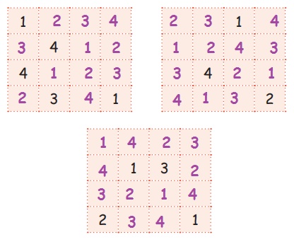 3. கீழ்கண்ட 4 × 4 சுடோகுகளை 1, 2, 3, 4 எண்களைக் கொண்டு நிரப்புக.