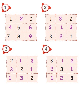1. 1, 2, 3 ஆகிய எண்களை கொண்டு கட்டங்களை நிரப்புக.