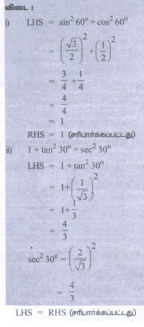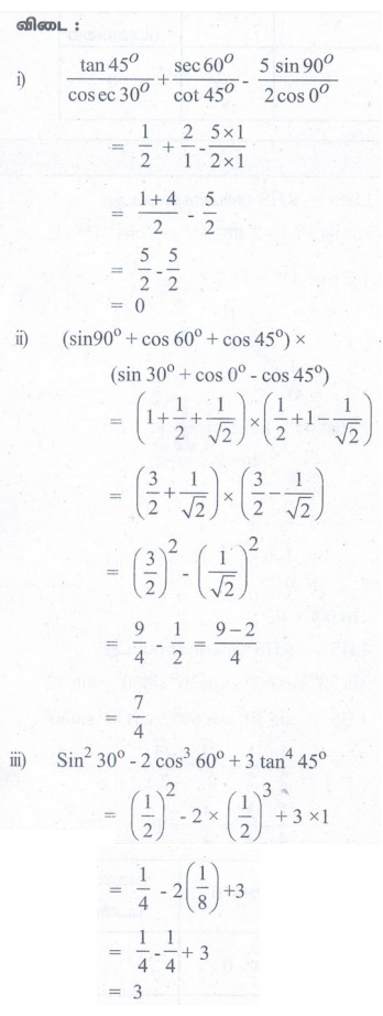 9th Maths : UNIT 6 : Trigonometry : Exercise 6.2: Trigonometric Ratios of Some Special Angles Numerical Problems with Answers, Solution | Trigonometry | Maths in Tamil : 9th Standard