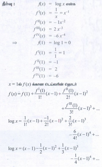 12th Maths : UNIT 7 : Applications of Differential Calculus : Exercise 7.4 : Series Expansions: Maclaurin’s and Taylor’s Series Problem Questions with Answer, Solution in Tamil : 12th Standard