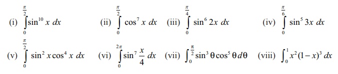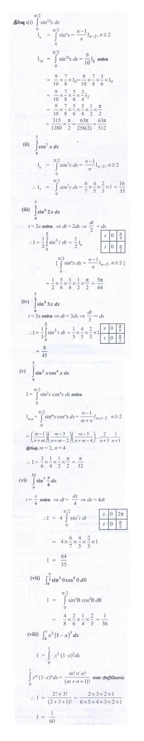 கணக்கு புத்தக பயிற்சி வினாக்கள் மற்றும் தீர்வுகள் - கணிதவியல் : தொகை நுண்கணிதத்தின் பயன்பாடுகள் : குறைப்புச் சூத்திரங்கள் (Reduction Formulae) : சோதனை வினாக்களுக்கான கேள்வி பதில், தீர்வுகள்