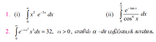 கணக்கு புத்தக பயிற்சி வினாக்கள் மற்றும் தீர்வுகள் - கணிதவியல் : தொகை நுண்கணிதத்தின் பயன்பாடுகள் : காமா தொகையிடல் (Gamma Integral) : சோதனை வினாக்களுக்கான கேள்வி பதில், தீர்வுகள்