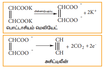 3. நிறைவுறா டைகார்பாக்சிலிக் அமிலங்களின் உப்புகளை மின்னாற்பகுத்தலின் மூலம் ஆல்கைன்கள் தயாரித்தல் (கோல்ப் மின்னாற்பகுப்பு முறை)