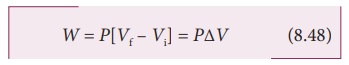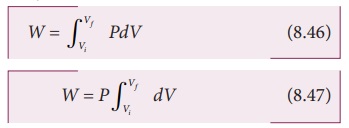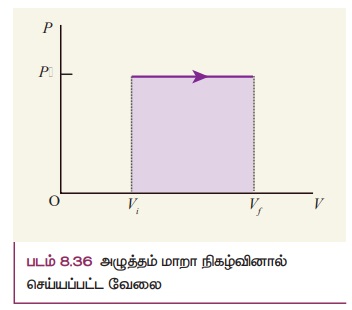 PV வரைபடத்தில், அழுத்தம் மாறா வளைகோட்டிற்குச் கீழே உள்ள பரப்பு, அழுத்தம் மாறா நிகழ்வினால் செய்யப்பட்ட வேலைக்குச் சமமாகும். படம் 8.36 இல் காட்டப்பட்டுள்ள நிழலிடப்பட்ட பகுதி வாயுவால் செய்யப்பட்ட வேலைக்குச் சமமாகும்.