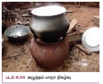 நமது வீட்டு சமையல் அறையில் நடைபெறும் பெரும்பாலான சமையல் நிகழ்வுகள் அழுத்தம் மாறா நிகழ்வுகள் ஆகும். திறந்த பாத்திரத்தில் உணவினை சமைக்கும் போது உணவிற்கு மேலே உள்ள அழுத்தம் எப்போதும் வளிமண்டல அழுத்தத்திற்குச் சமமாகும். இது படம் (8.34) இல் காட்டப்பட்டுள்ளது.