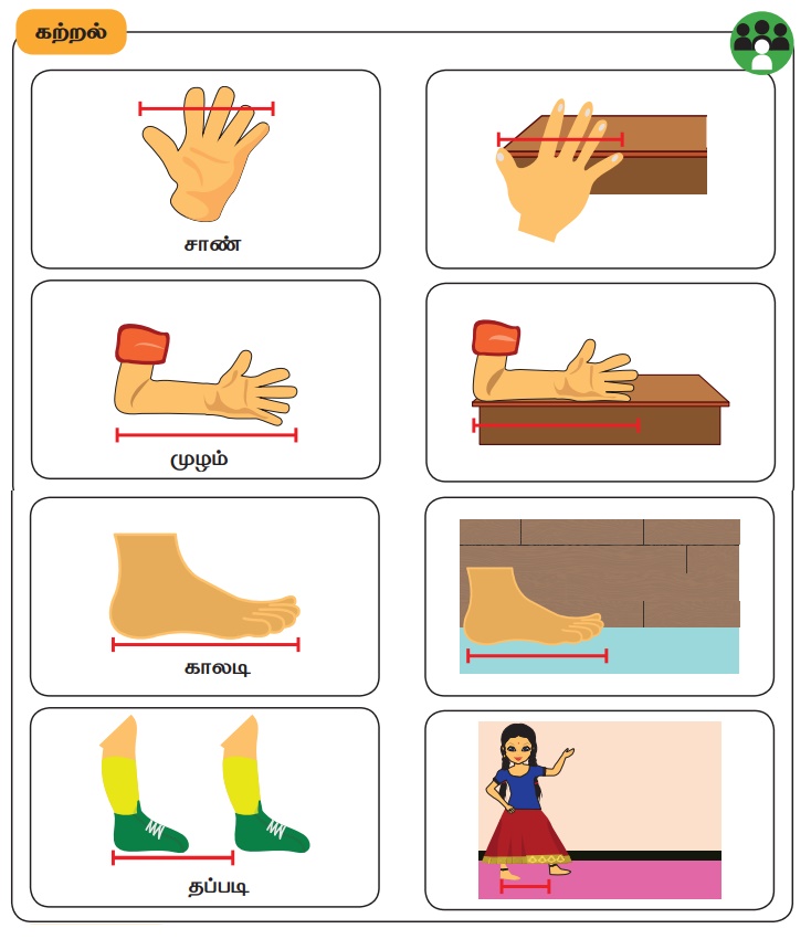 கலைச் சொற்கள் : சாண், முழம்,காலடி, தப்படி, நீளம்