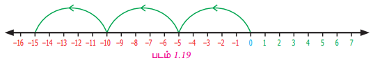 (−5) × 3 = −15 ((–5) ஐ மூன்று முறைக் கூட்டுக).