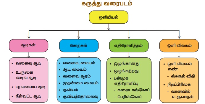 ஒளியியல் | அலகு 3 | 8 ஆம் வகுப்பு அறிவியல் - நினைவில் கொள்க, சொல்லடைவு , கருத்து வரைபடம் | 8th Science : Chapter 3 : Light