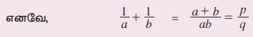 எடுத்துக்காட்டு 2.10 x2 - px + q = 0 என்ற சமன்பாட்டின் மூலங்கள் a மற்றும் b எனில், 1/a+1/b-ன் மதிப்பினைக் காண்க.