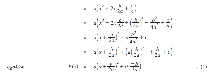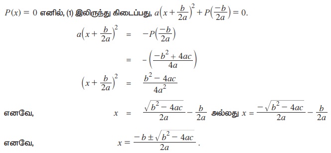 குறிப்பு: (i) α மற்றும் β ஆகியவை ax2 + bx + c = 0-ன் மூலங்கள் எனில் α + β = - b/a மற்றும் αβ = c/a ஆகும்.