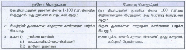 1. 1−100nm அளவுகள் வரை கொண்ட பொருளின் அறிவியல் ஆகும். ஒரு மீட்டரில் மில்லியனில் ஒரு பங்கு அதாவது 10−9m ஆகும்.