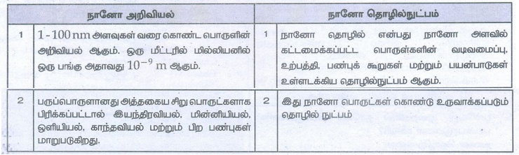 1. நானோ அறிவியல் மற்றும் நானோ தொழில்நுட்பம் வேறுபடுத்துக.