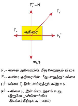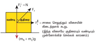 (ii) சாலை, குதிரையின் மீது செலுத்தும் விசை (Fr)