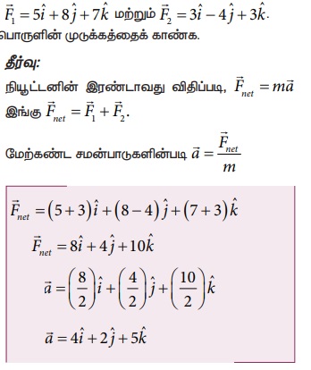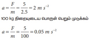 4. முடுக்கம் கொடுக்கப்பட்டிருப்பின் விசையைக் கண்டறியலாம். அதே போல் விசை கொடுக்கப்பட்டிருப்பின் பொருளின் முடுக்கத்தைக் காணலாம்.
