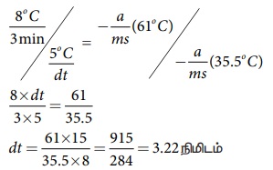3 நிமிடங்களில் சூடான நீரின் வெப்பநிலை 8°C குறைந்துள்ளது. 92°C மற்றும் 84°C இன் சராசரி வெப்பநிலை 88°C. இது அறை வெப்பநிலையைவிட 61°C அதிகமாக உள்ளது. சமன்பாடு (8.8) ஐப் பயன்படுத்தினால்