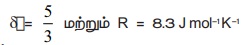 இங்கு μ = 1 mol மற்றும் R = 8.314 J/mol.K. இம்மதிப்புகளை சமன்பாட்டில் பிரதியிடும் போது