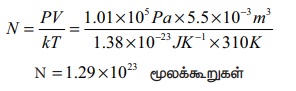 கணக்கிடப்பட்ட N மதிப்பில் 21% மட்டுமே ஆக்ஸிஜன் மூலக்கூறுகளாகும். எனவே மொத்த ஆக்ஸிஜன் மூலக்கூறுகளின் எண்ணிக்கை
