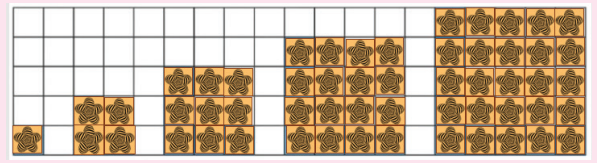 1. கொடுக்கப்பட்டுள்ள படத்தில் x என்பது படிநிலைகளின் எண்ணிக்கையையும், y என்பது வடிவங்களின் பரப்பளவையும் குறிக்கிறது எனில், x மற்றும் y இக்கு இடையே உள்ள தொடர்பை அட்டவணைப்படுத்துதலின் மூலம் காண்க.