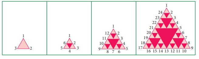 உருவாக்குக. இதேபோல, தொடர்ந்து கீழே கொடுக்கப்பட்டுள்ள வடிவமைப்பு கிடைக்கும் வரை முக்கோணங்களை உருவாக்கவும்.
