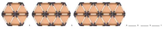 இதனைத் தொடர்ந்து வரும் மூன்று பலகோண வடிவங்களை வடிவமைப்பதற்கு எத்தனை தீக்குச்சிகள் தேவைப்படும் என்பதைக் கண்டறிந்து அட்டவணை மூலம் பொதுமைப்படுத்தவும்.