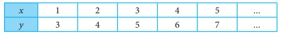எனவே, அட்டவணையின் மூலம் நாம் அறிவது, x இன் மதிப்பை விட y இன் மதிப்பு 2 கூடுகிறது. அதாவது, y = x +2 . ஆகவே,