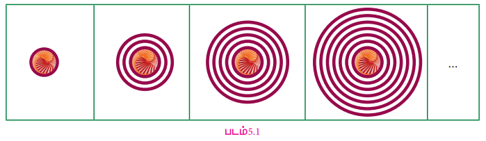 அதனைச் சுற்றிச் சம அளவுள்ள வட்ட வளையங்களை வரையவும்
