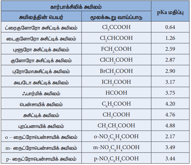 ii) எலக்ட்ரான் வெளியீர்க்கும் தொகுதிகள் அமிலத்தன்மையை அதிகரிக்கின்றன.