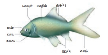 4. மீன் நீரில் நீந்துவதற்காக துடுப்புக்களைப் பெற்றுள்ளது.