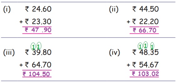 பணத்தை மதிப்பு வகைப்பாடு செய்து ரூபாய் மற்றும் பைசாவை (10 இன்மடங்கு) இன மாற்றத்துடன் கூட்டல் மற்றும் கழித்தல் (செங்குத்தாக)
