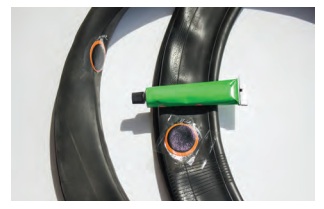 பொருத்தமான அளவு டயர்/டியூபினை எடுத்துக்கொண்டு, இருபகுதிகளிலும் தகுந்த பசையினைத்